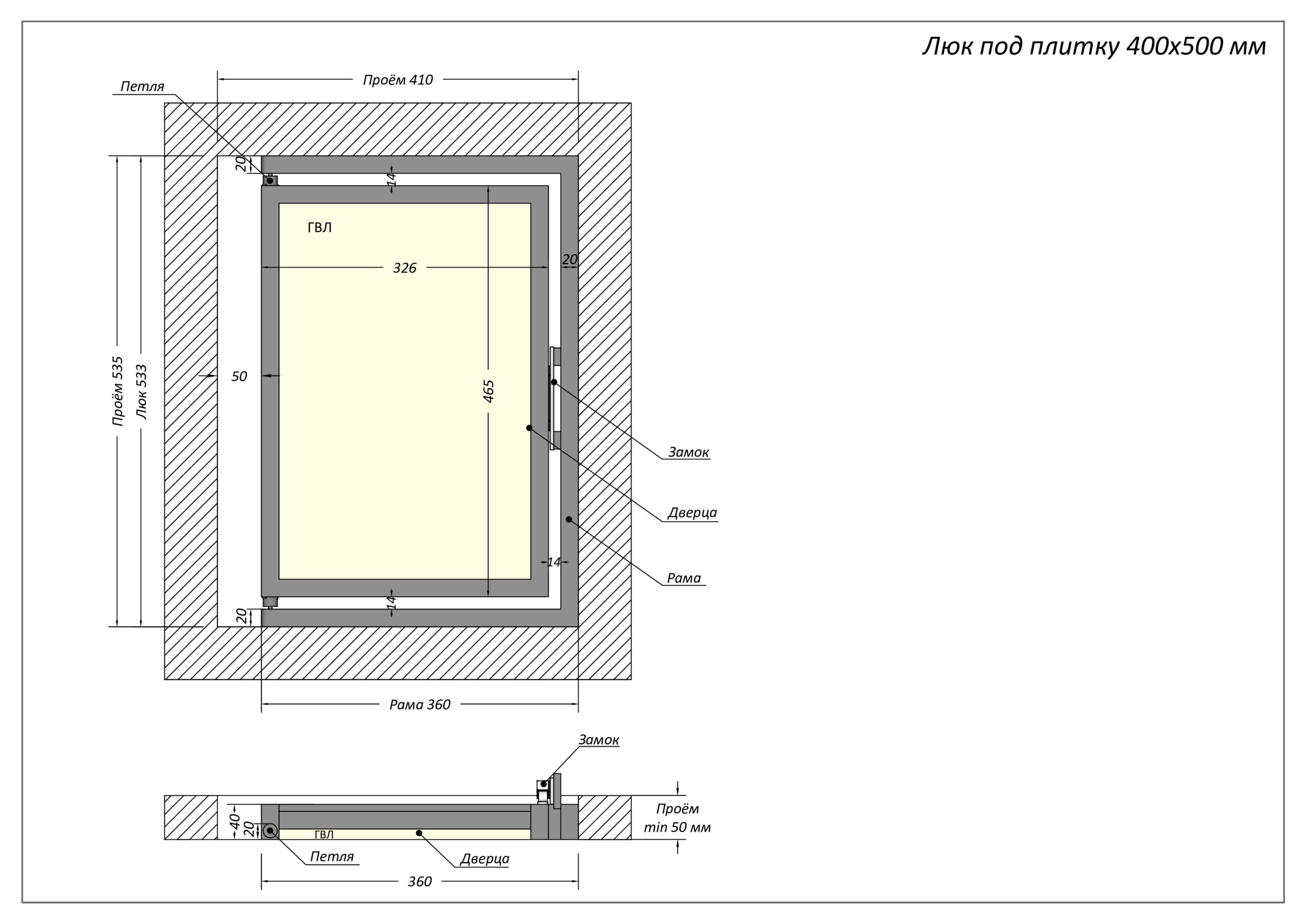 Артикул: 10ЛС400Х500В Категория: Люки под плитку