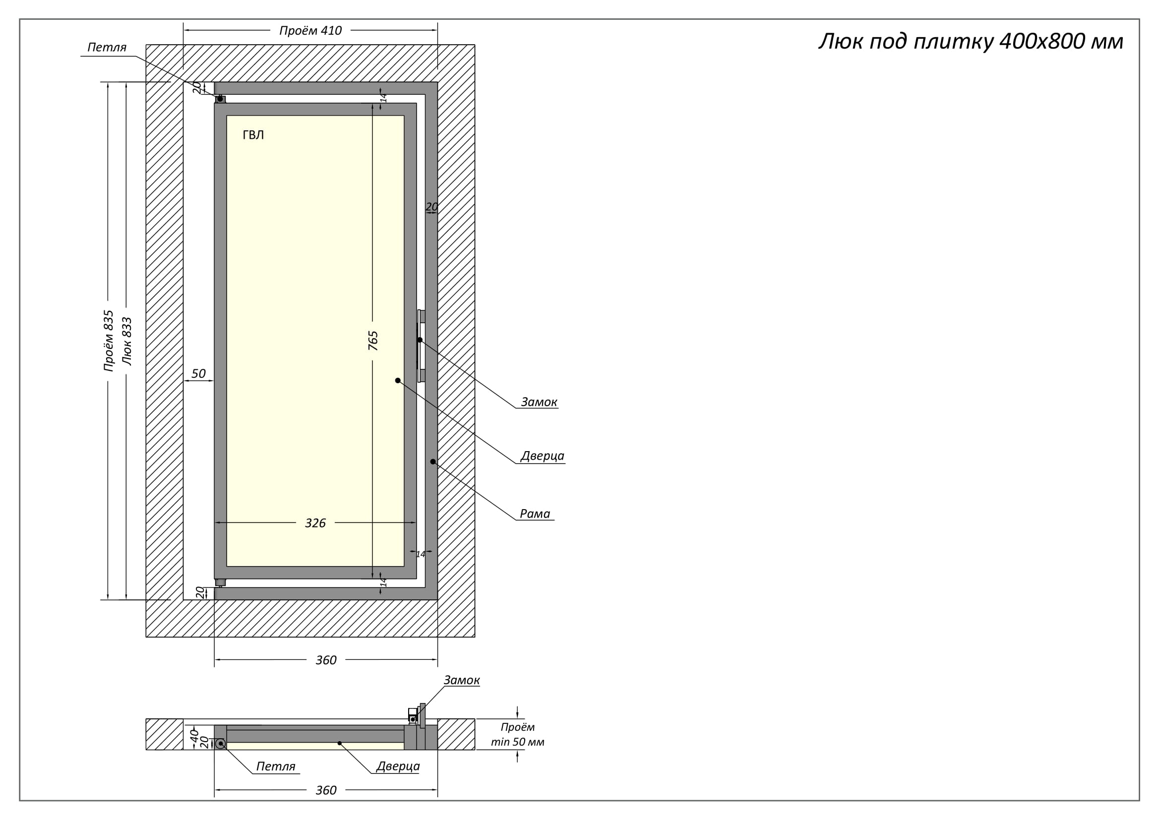 Артикул: 13ЛС400х800В Категория: Люки под плитку