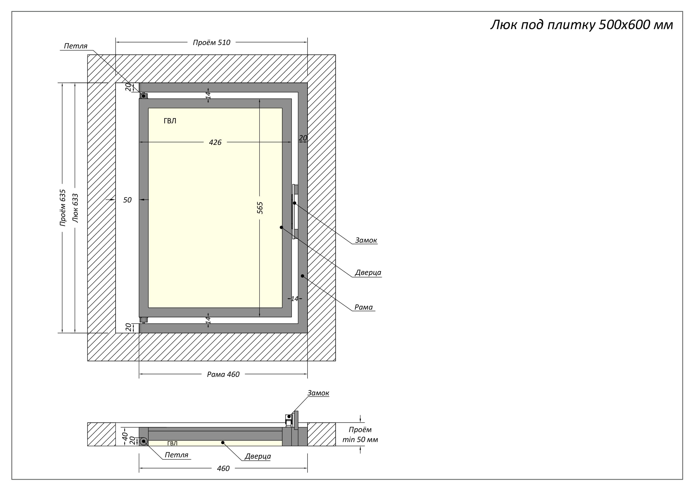 Главная Люки под плитку Люк ревизионный / 500х600 мм