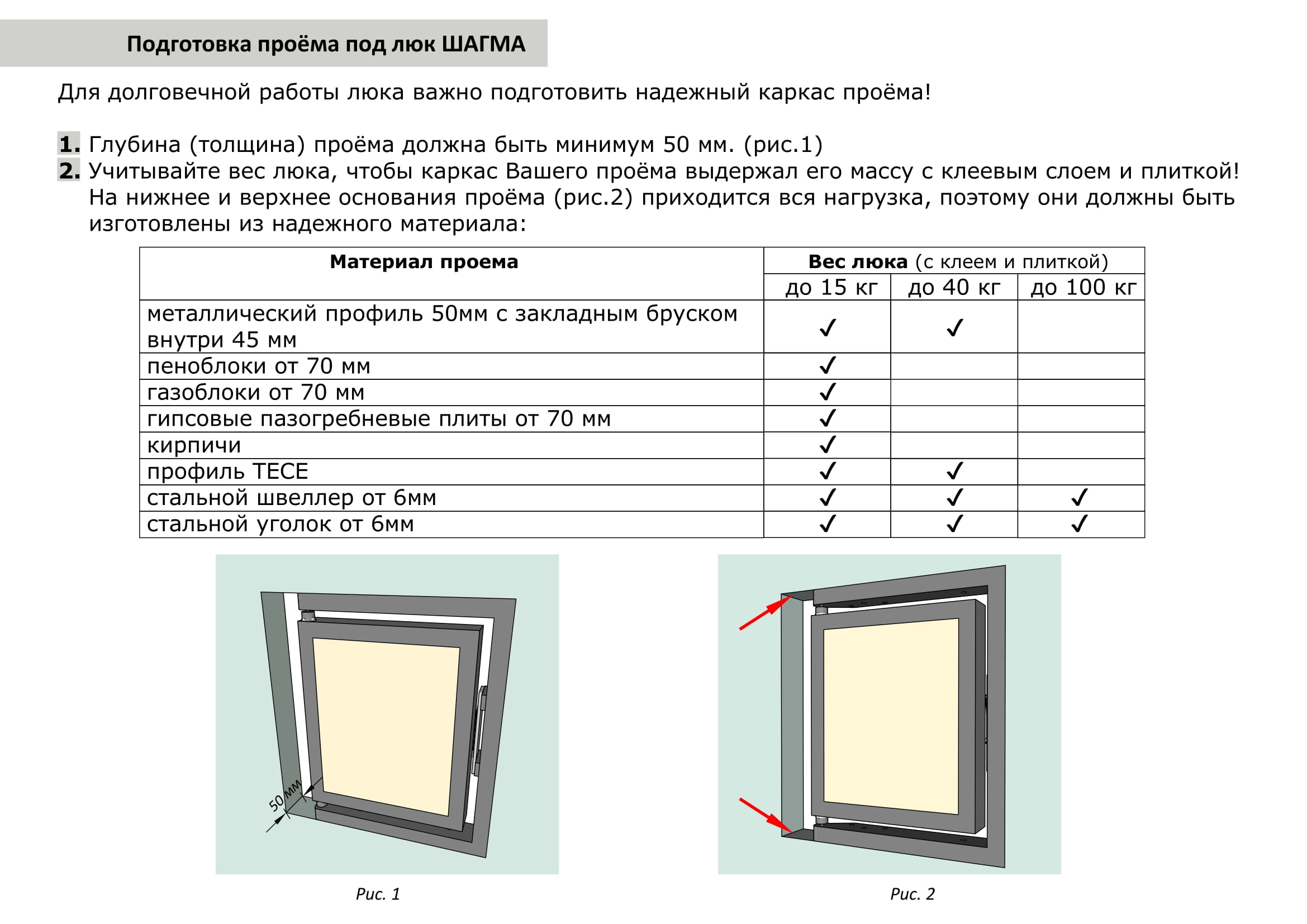Инструкции по установке и монтажу люков доступны на странице Установка и монтаж