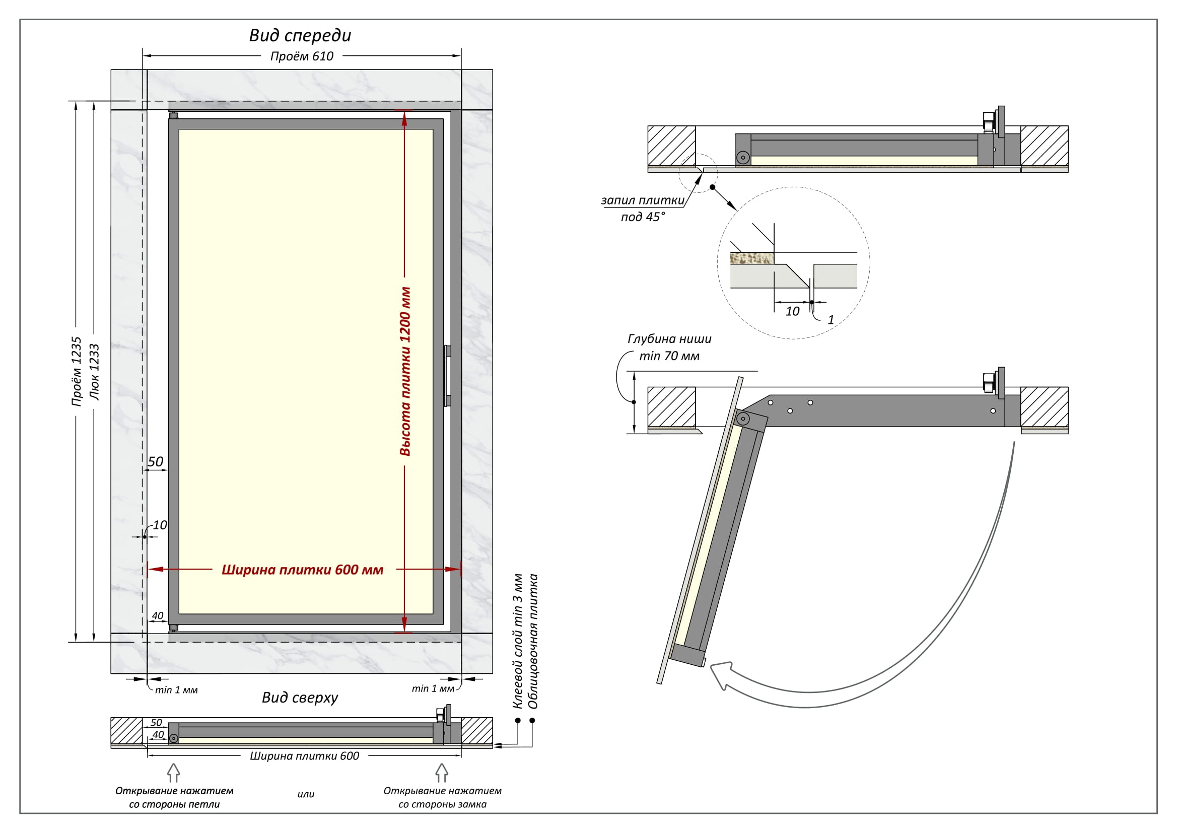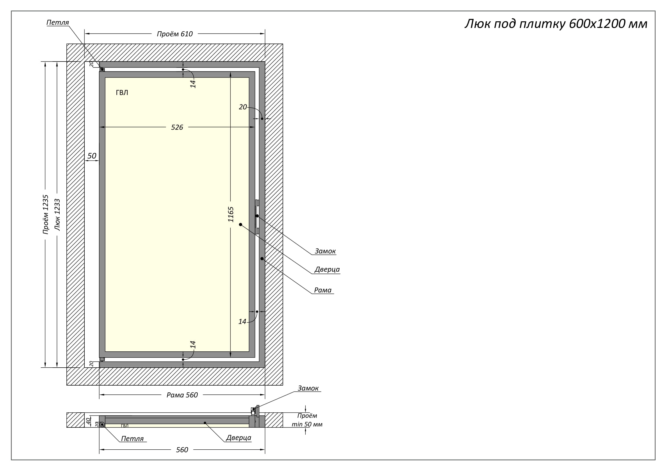 Главная Люки под плитку Люк ревизионный / 600х1200 мм