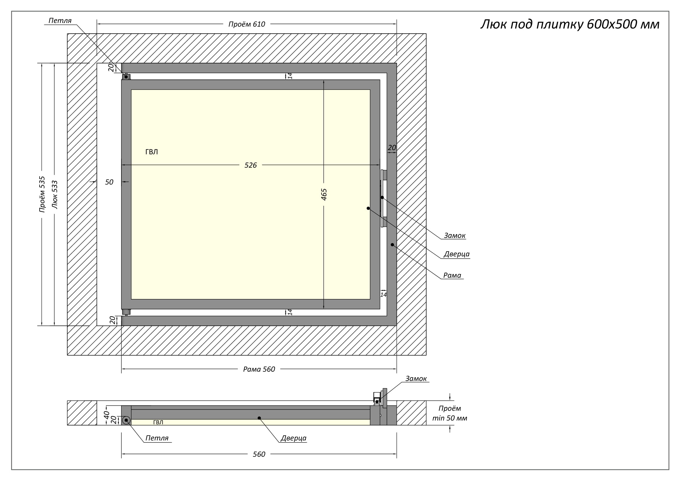 Люк ревизионный / 500х600 мм